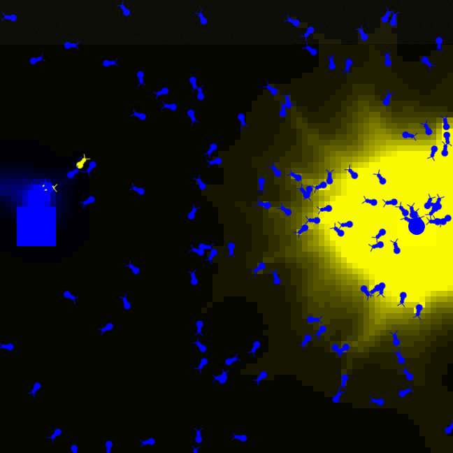 Ants find the shortest path to food by leaving a trail of evaporating pheromones in their environment. A classic example of stigmergic behavior.