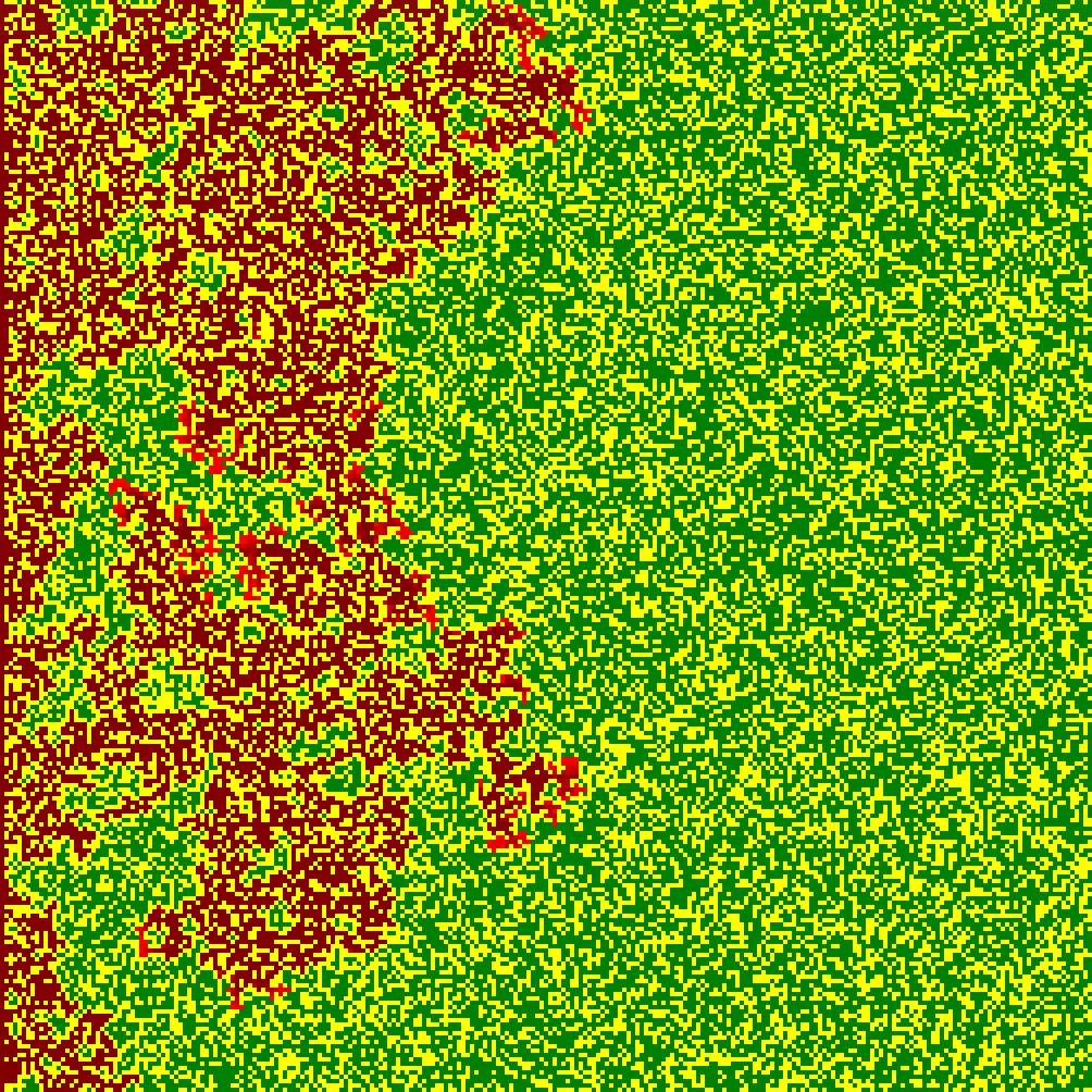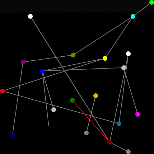 A single connected component forms over time as two agents are connected at random every tick.
